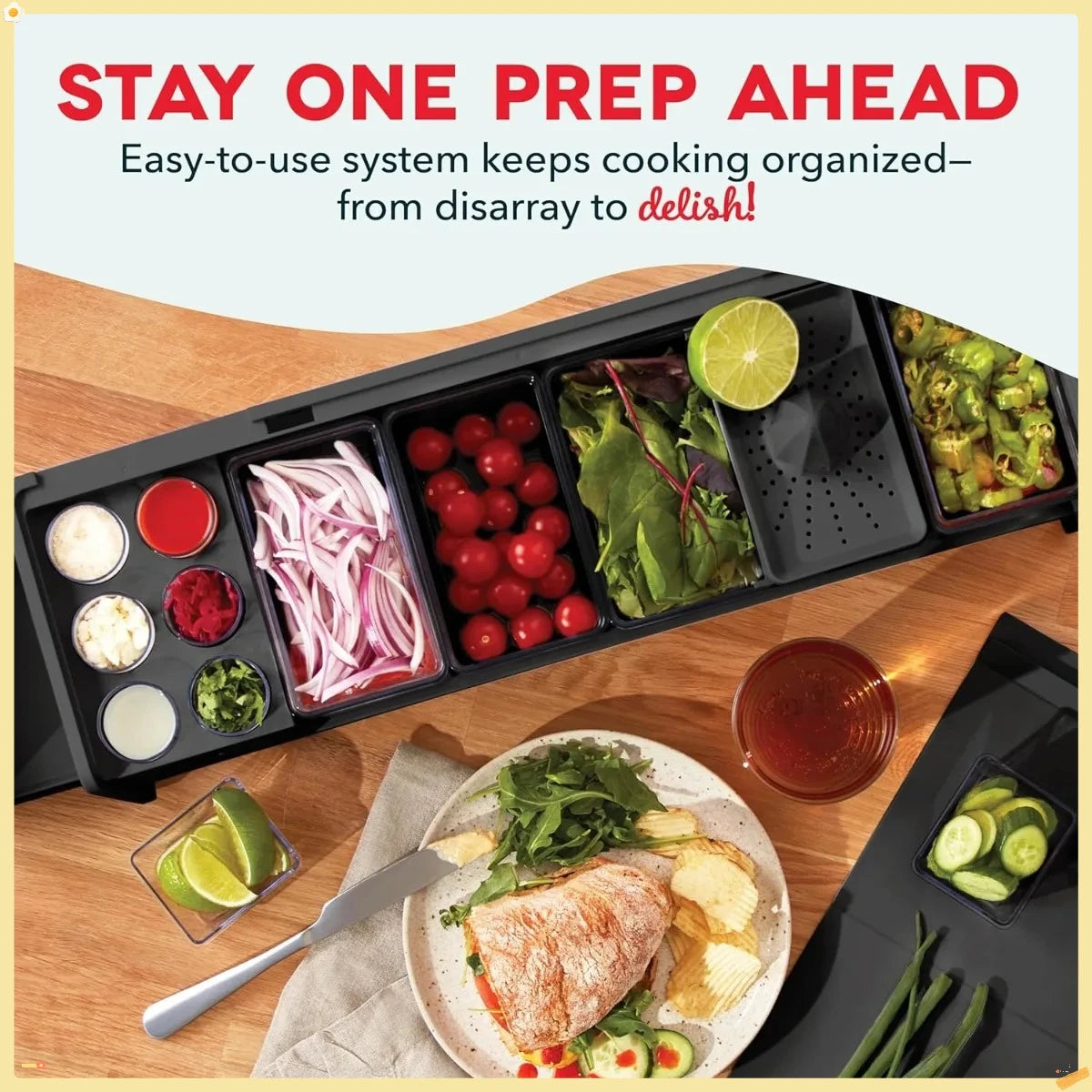 CUT THE CHAOS: Gen 2 features a new color-matched non-slip silicone foot trim to keep your food prep peaceful & tidy. Stay organized with an even more simplified & streamlined prep kit that makes better meals, frustration-free! With 8 handy tools within reach & 5 sizes of containers to stash your chopped veggies, you’ll love this new & improved design – no chaos, no clutter, no catch.