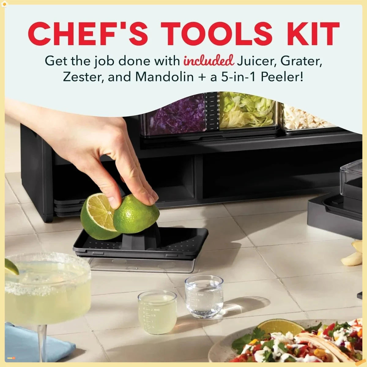 FASTER, EASIER & ZERO MESS: Make a meal, not a mess! We redesigned our 8 kitchen essentials to simplify & speed up the process: zester, juicer, grater, slicer, peeler, green-stripper, bottle opener, + a NEW garlic crusher for grating/zesting/slicing + a unique safety feature to protect your fingers. Now inside a removable holder for storage in your kitchen drawer. Each tool snaps onto the containers to give you better control so you can enjoy mess-free & speedy slicing & dicing!